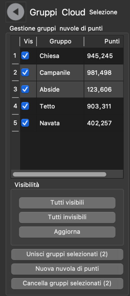 I gruppi possono anche essere distaccati dalla nuvola di punti generale e inseriti in una nuova nuvola indipendente.